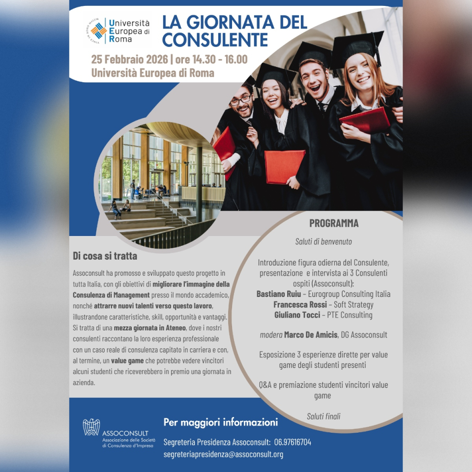 Tornano gli appuntamenti di Assoconsult dedicati alla “Giornata del Consulente”.